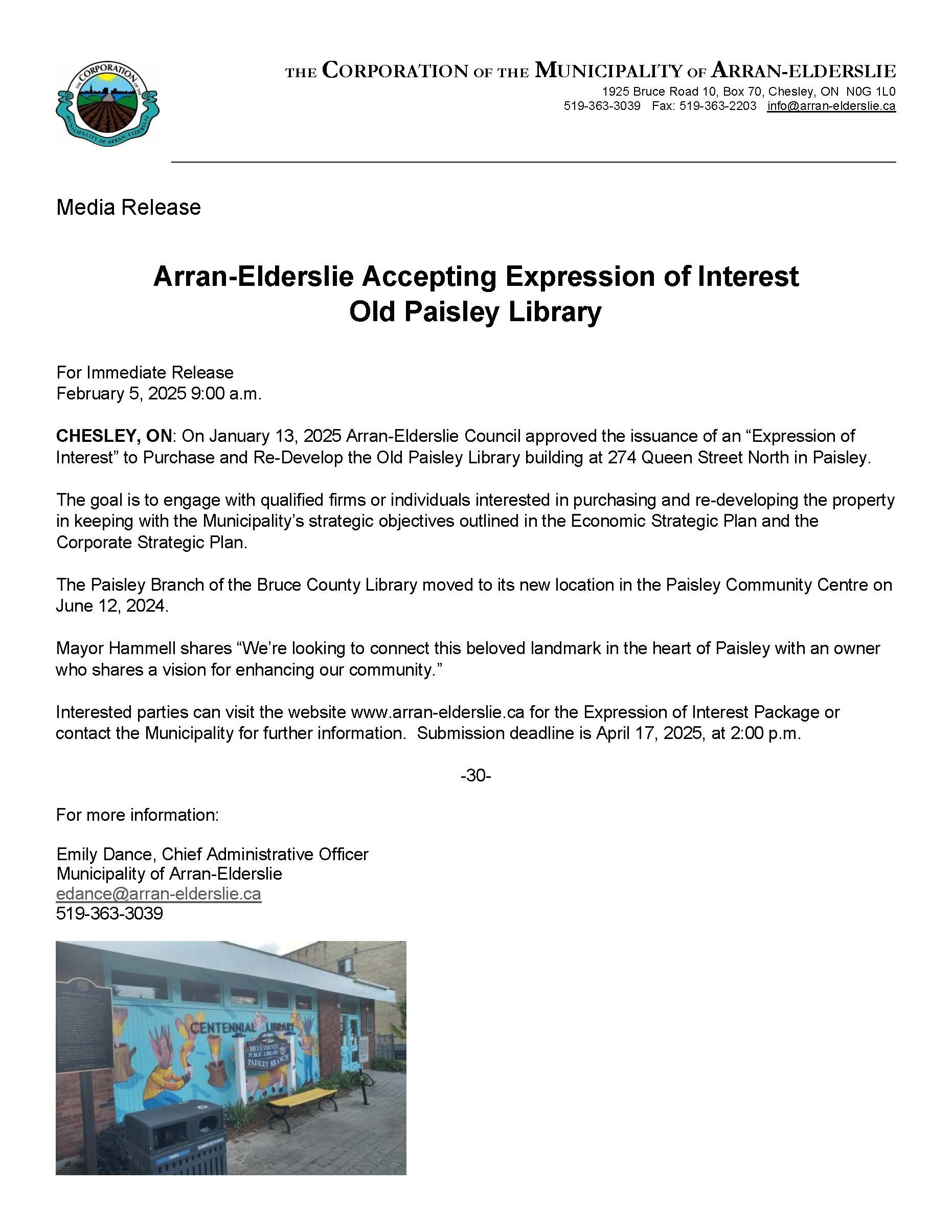Arran-Elderslie Accepting Expression of Interest Old Paisley Library